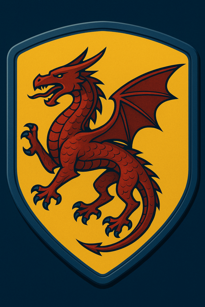 | Sigil: Red Dragon on a Shield of yellow with blue Claws |
