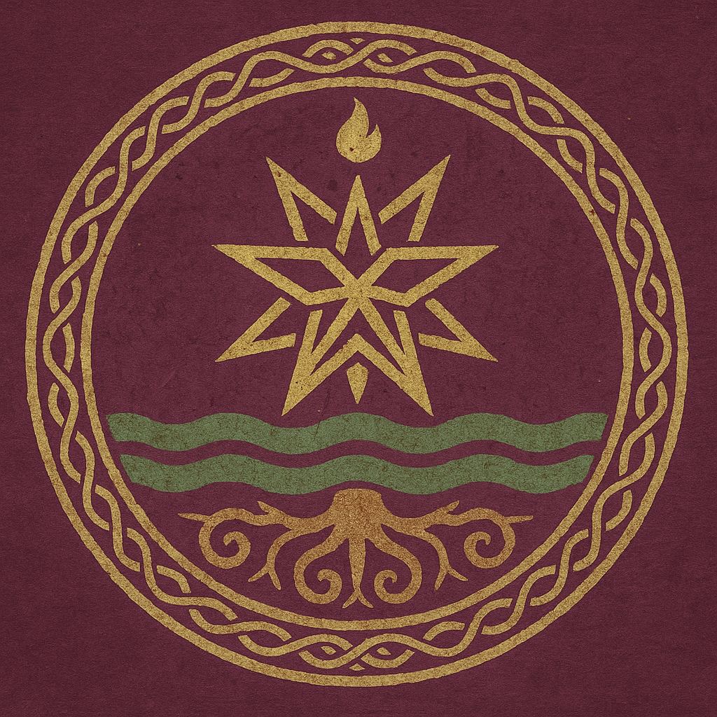 | Sigil: A radiant eight-pointed star set above a river-wave and oak roots motif |