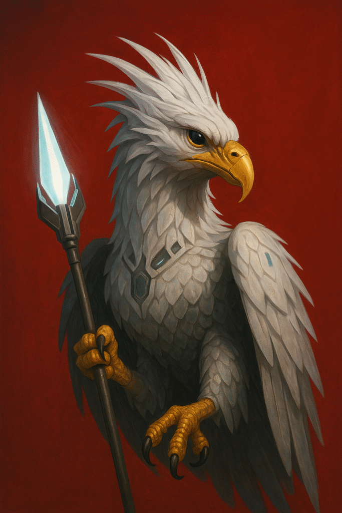 | Sigil: A white, crowned Wendol Eagle with a golden beak and talons, on a red background. |