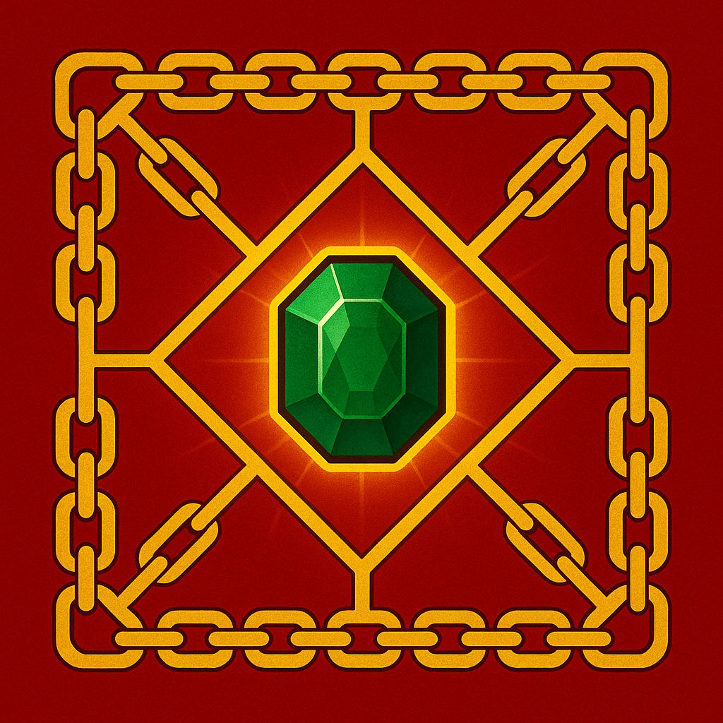 | Sigil: Golden Chains on a background of Red with a Green Emerald in the center |